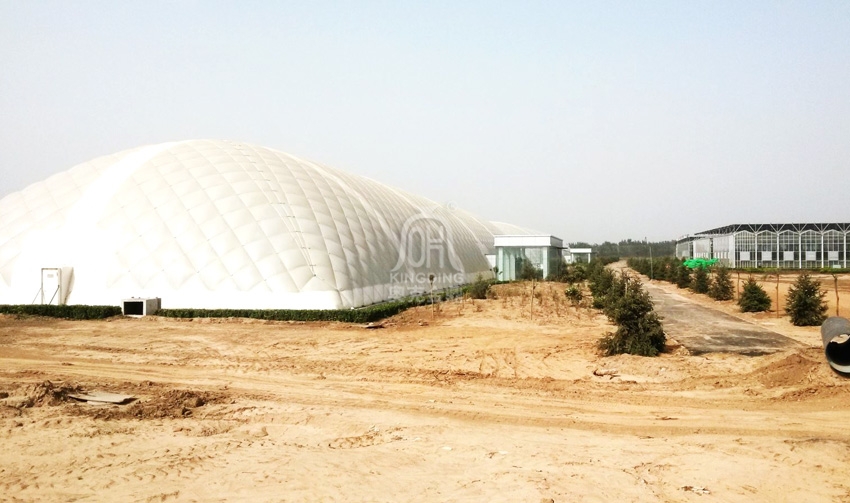 傳統(tǒng)的農(nóng)業(yè)大棚抗風(fēng)性能和抗雪荷載性能差,充氣膜農(nóng)業(yè)大棚可抗12級風(fēng),30-50cm的雪。8級地震,雙層的透明膜材保溫效果好,光照符合農(nóng)作物生長的透光要求,對農(nóng)業(yè)界產(chǎn)生重大變革。