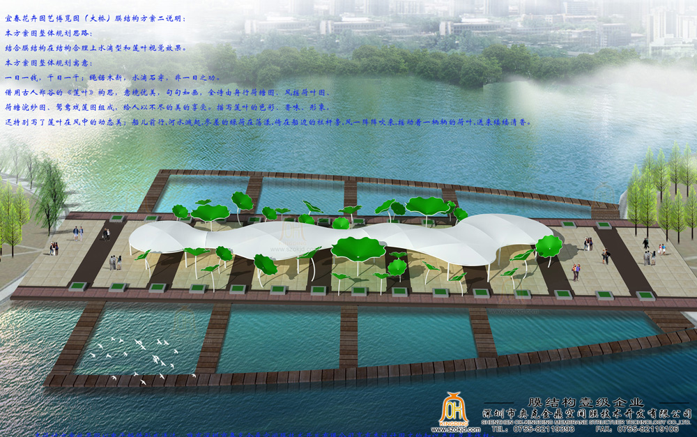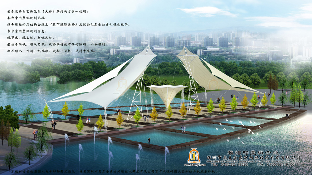 膜結(jié)構(gòu)建筑的特點(diǎn)及應(yīng)用領(lǐng)域:膜結(jié)構(gòu)是一種全新的建筑結(jié)構(gòu)形式,它集建筑學(xué)、結(jié)構(gòu)力學(xué)、精細(xì)化工與材料科學(xué)、計(jì)算機(jī)技術(shù)等為一體,具有很高技術(shù)含量。其曲面可以隨著建筑師的設(shè)計(jì)需要任意變化,結(jié)合整體環(huán)境,建造出標(biāo)志性的形象工程。膜結(jié)構(gòu)建筑有張拉類(lèi)、懸吊類(lèi)、充氣類(lèi)、桁架結(jié)構(gòu)類(lèi)等。產(chǎn)品廣泛應(yīng)用于體育場(chǎng)館、廣場(chǎng)、大型停車(chē)場(chǎng)、停機(jī)庫(kù)、高速公路收費(fèi)站、加油站、博覽會(huì)展廳、臨時(shí)會(huì)場(chǎng)、休閑場(chǎng)所、景區(qū)裝飾等。