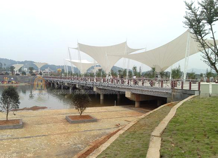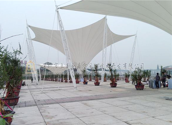 江西宜春花卉博覽園張拉膜項目,交鑰匙工程,展開面積3286平方。膜材料采用平岡COOLMAX312T超強自潔膜材料,原廠提供質(zhì)量保證15年。