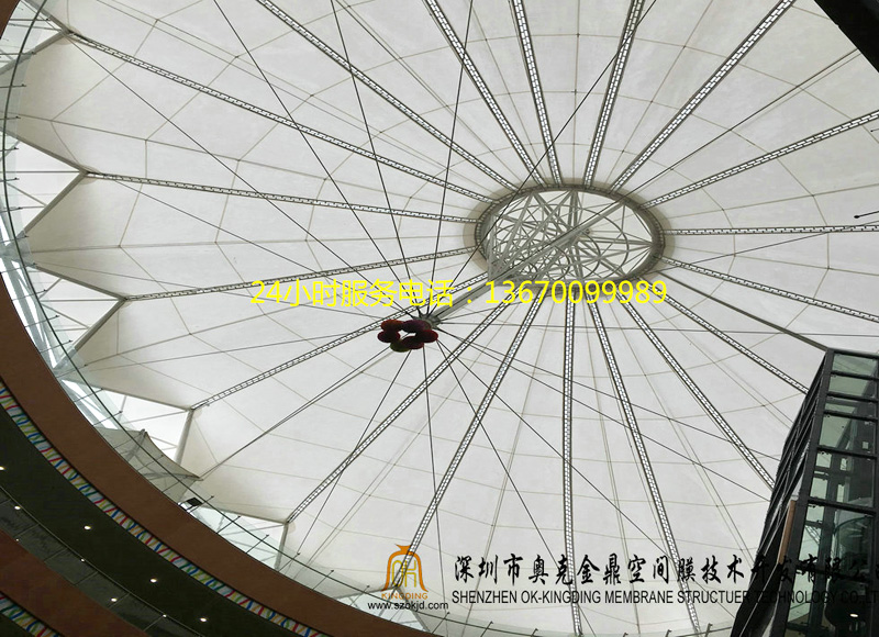 大跨度:膜結(jié)構(gòu)可以從根本克服傳統(tǒng)結(jié)構(gòu)在大跨度(無支撐)建筑上實現(xiàn)所遇到的困難,可創(chuàng)造巨大的無遮擋可視空間,有效增加空間使用面積。