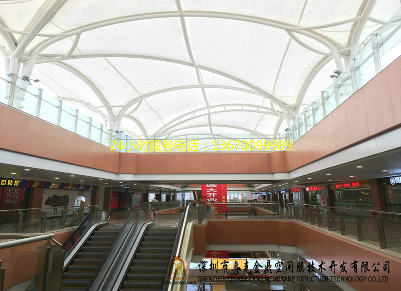 經(jīng)濟性:由于膜材具有一定的透光率,白天可減少照明強度和時間,能很好地節(jié)約能源。同時夜間彩燈透射形成的絢爛景觀也能達到很好的廣告宣傳效益。