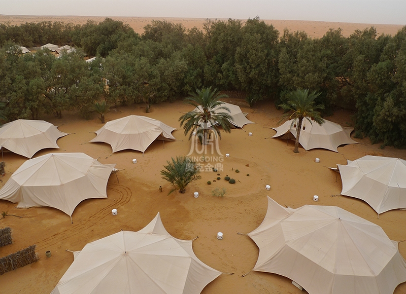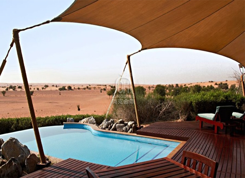 本項(xiàng)目施工完成后是比較大器而壯觀的,由幾十個(gè)單品膜結(jié)構(gòu)帳篷酒店整體統(tǒng)一規(guī)劃、布置的要素,富有一點(diǎn)剛度的穩(wěn)定曲面的她,體現(xiàn)了她的文化、設(shè)計(jì)理念和內(nèi)涵。膜結(jié)構(gòu)本身飄逸的造型讓客人深入其中時(shí)感覺(jué)她的人文、地理,仿佛進(jìn)入似成相識(shí)的夢(mèng)境,離開(kāi)時(shí)回味她的魅力與莊嚴(yán)。